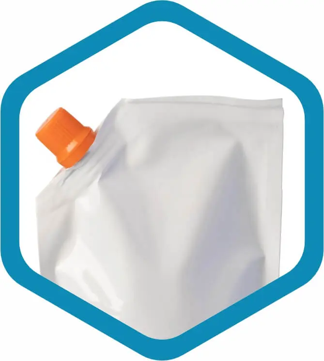 Bolsa laminada y puede venir con o sin impresión. Se puede personalizar con válvulas de dosificación y otros aditamentos.